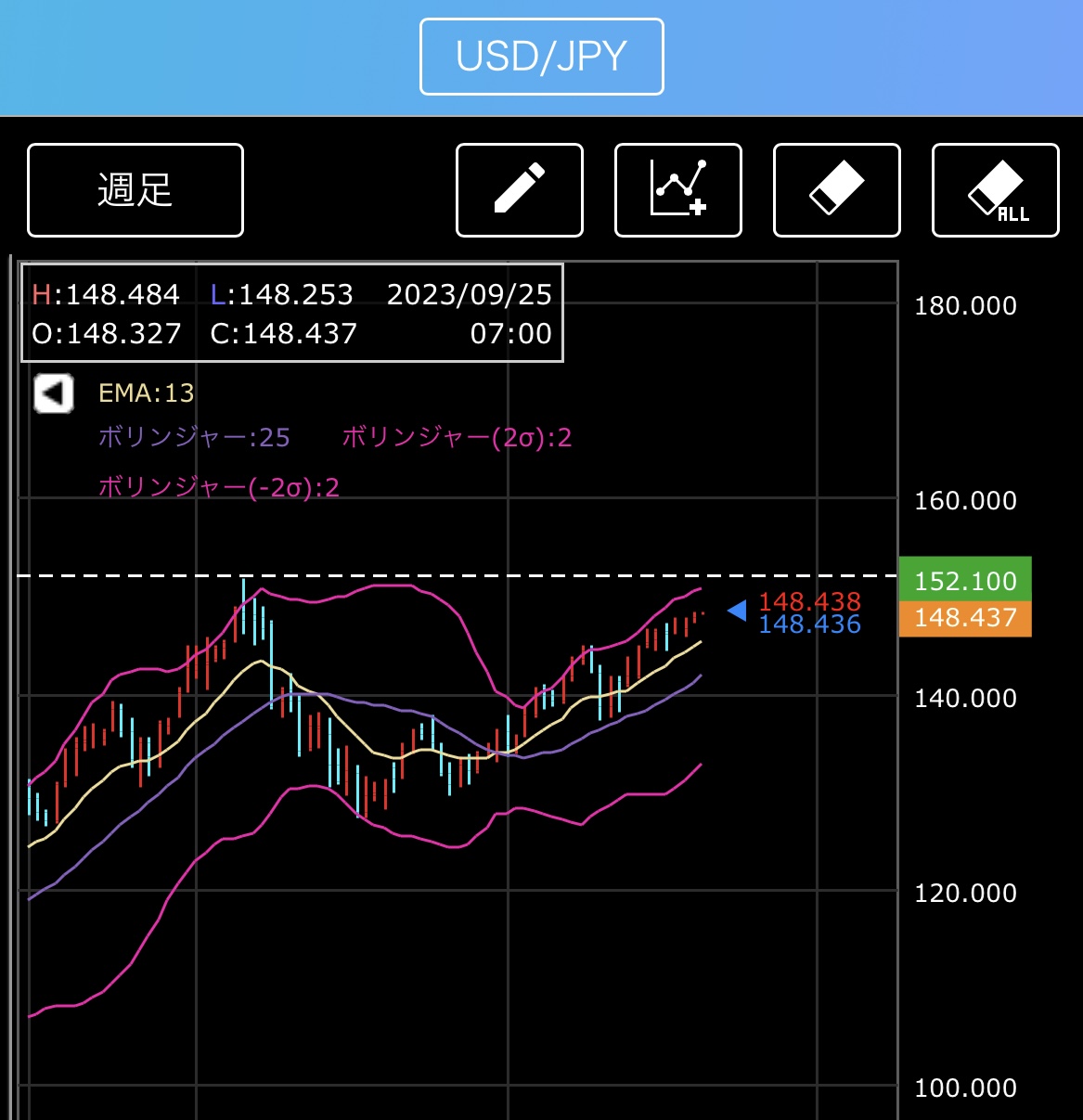 しかしながら、ある程度、億トレチャートを自分の物にしているユーザー様は、現在の狭い値幅のドル円1分足チャートでも、自己流億トレラインを引いて、Sポジを試しているユーザーさんも居るかもしれません。