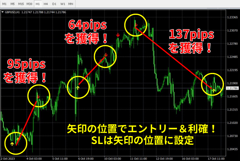 買いサインから95pips、64pipsを獲得しました!
