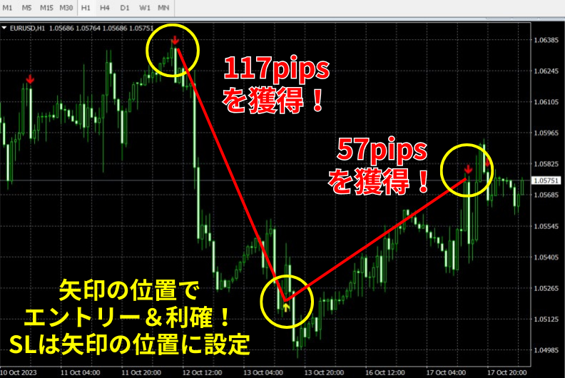 FX手法サイン。トレンドが変わる重要な転換点でサインを表示【2023年10月18日実績】