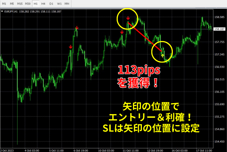 売りサインから113pipsを獲得しました!