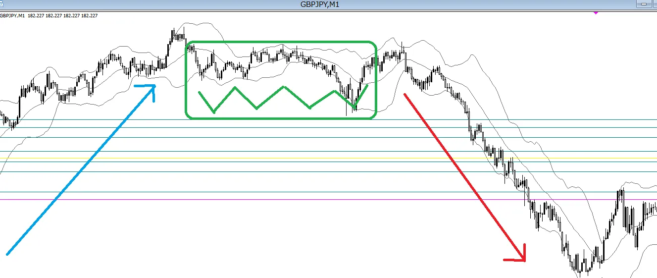 億トレーダーのスキャルピングユーザーの皆様は、もう一度よく、こういった場面の検証をして、多角的にチャートを見れるよう、ご自身の眼を養いましょう。