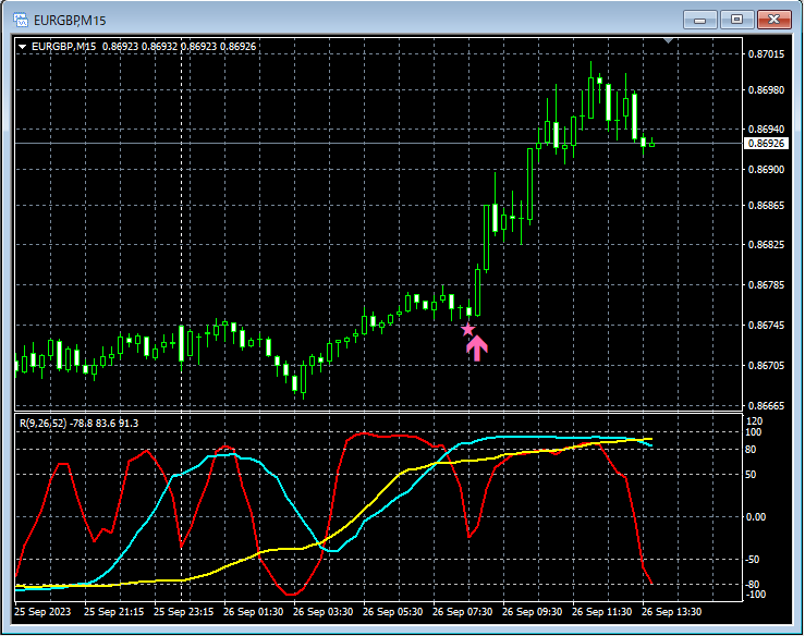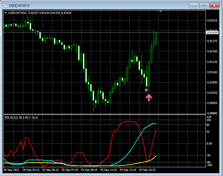 下記では、9月25日~9月29日において、mBDSR(RCI2本フィルターバージョン)のサインが上手く機能したと思われる例のうちの一部をピックアップして紹介します。