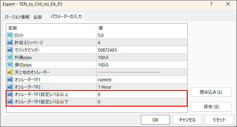 EAパターン②でも良いです。EAのパラメーターを画像の設定にする事でゼロラインより上での下降転換にのみ反応し自動エントリーを行います。