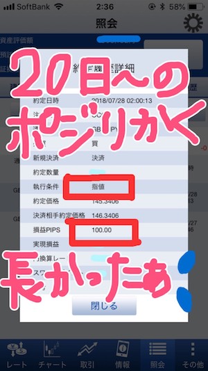 → 利食いは100pips、損切りは90pipsでOCOでセット