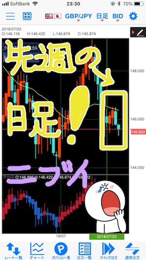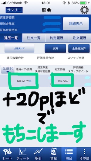 こんな感じで、先週のポンド円は値動きが小さかったです。エントリーしようと思うと、同じ方向20pips以内にポジションがあったり、3ポジションをすでに持っていたりと。