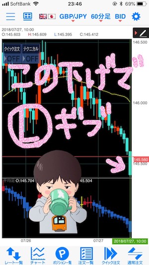7月28日に日付がかわった26時ごろに、7月20日に入った売りが利食いしました。