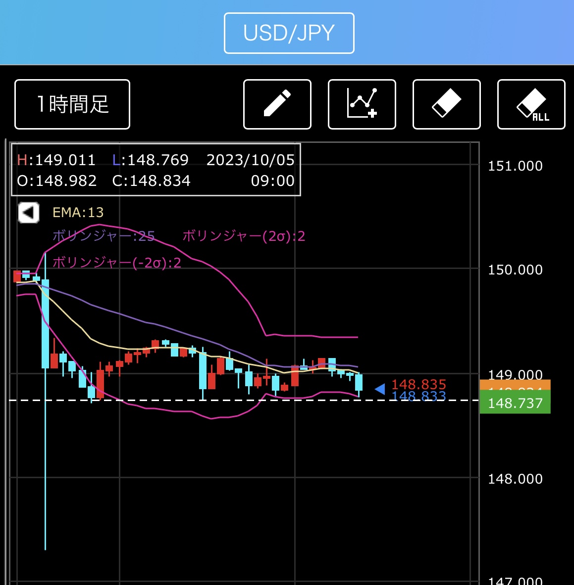 現状10時前に1時間足チャートでは、重要ラインを割り込んでいます。