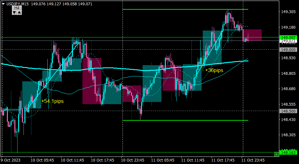 朝のシナリオ通り、148.50のサポートの強さを根拠にしたトレードだった。
