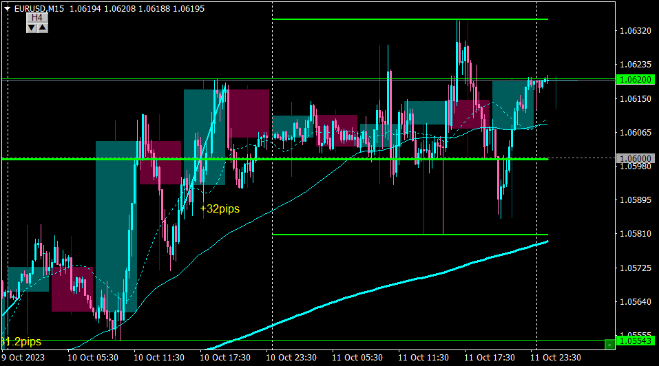 その後押し目を付けたところでロング。H4の足のクローズでイグジット。+36pips