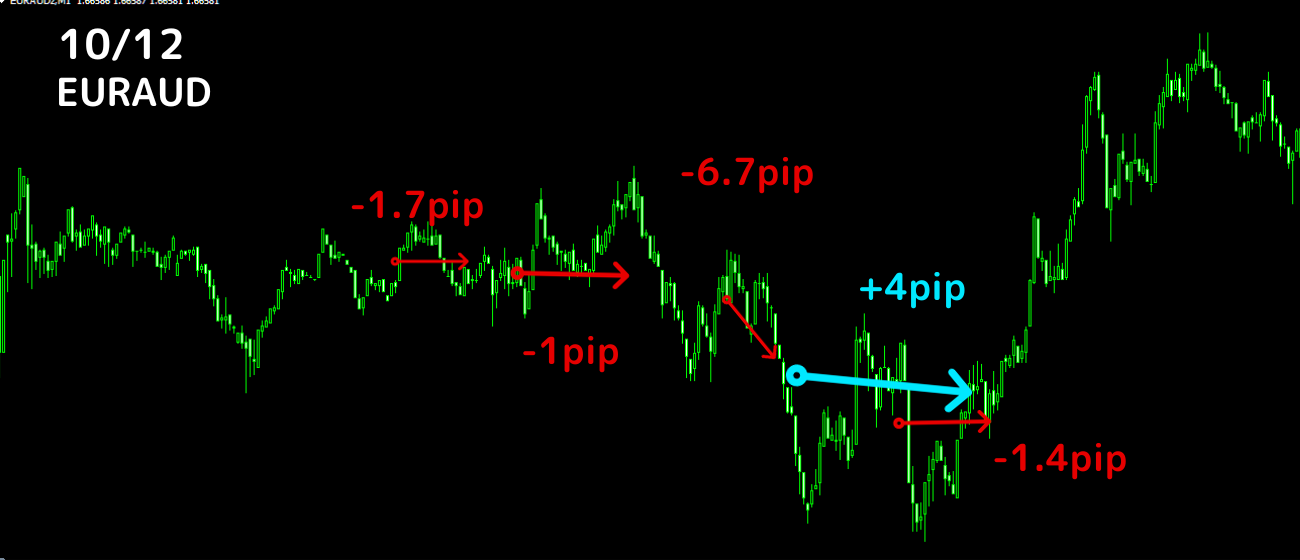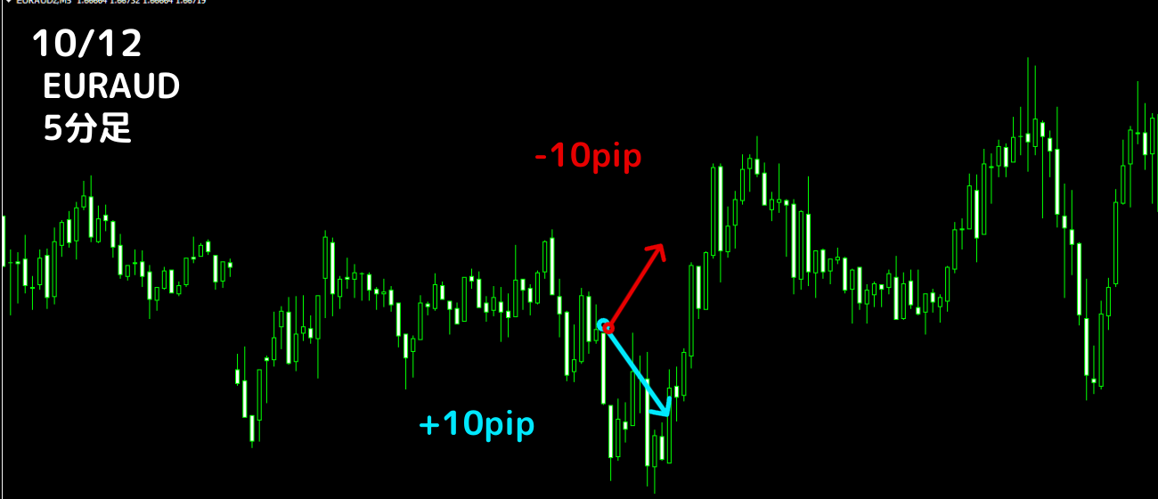 利確10pipスキャル (リスクリワード1:1) 1勝0敗 +10pip 勝率100%