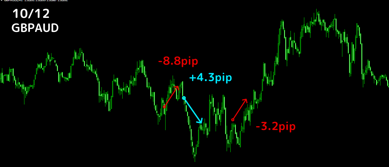 1勝2敗 -7.7pip 勝率33.3%