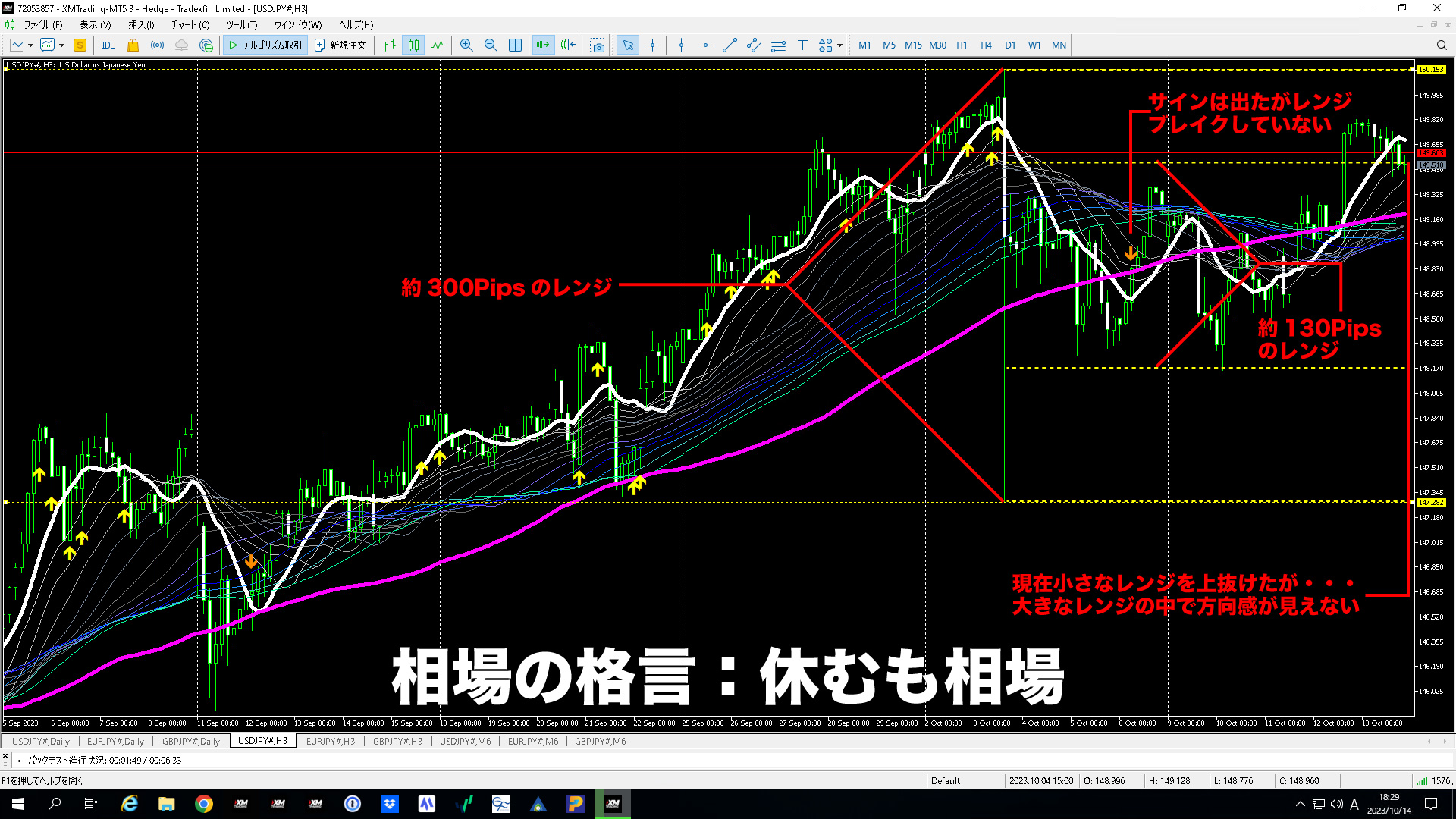 こうした大きなレンジ相場の中ではEAも休みますが、裁量トレードも損切り貧乏になりやすいのでご注意頂きたい。