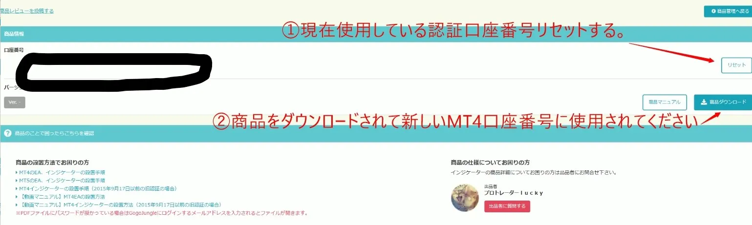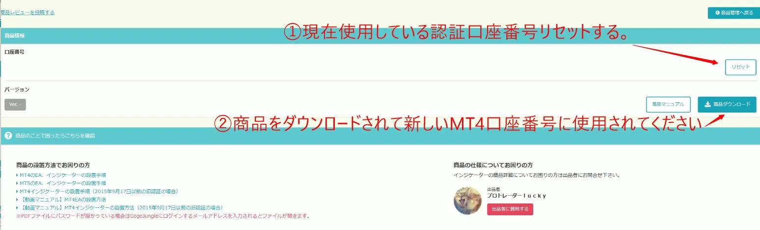 ②商品をダウンロード(新しいMT4に入れると自動的に認証されます)