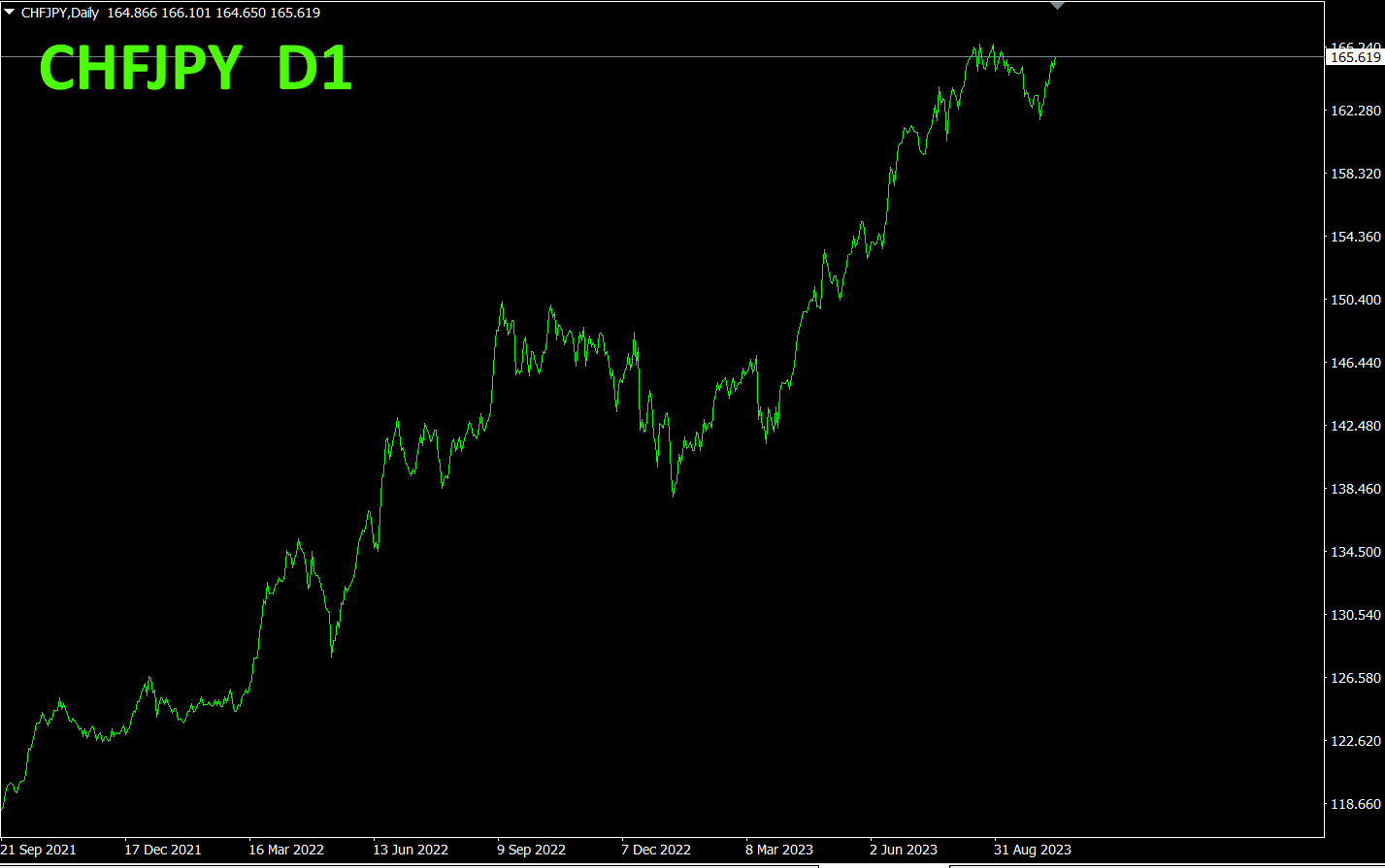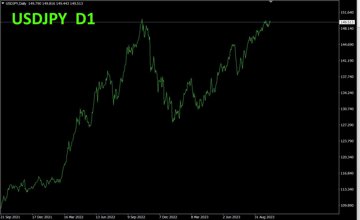 USDJPYは、直近高値のレベルに達しています。ちょうど150円の大台で、キリ番でもあるので、強いレジスタンスラインになるでしょう。しかし、ここを抜けたら200円まで円安が進むかもしれません。円は、「通貨として弱すぎる」ので、ドル円レートが200円になってもおかしくないです。