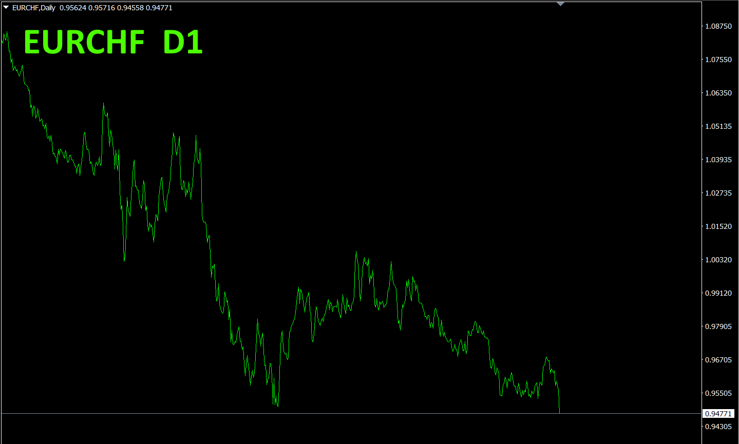 EURCHFは、直近安値を割って、さらに下落しているように見えます。もうしばらくは、反転上昇してくるのを待ちましょう。