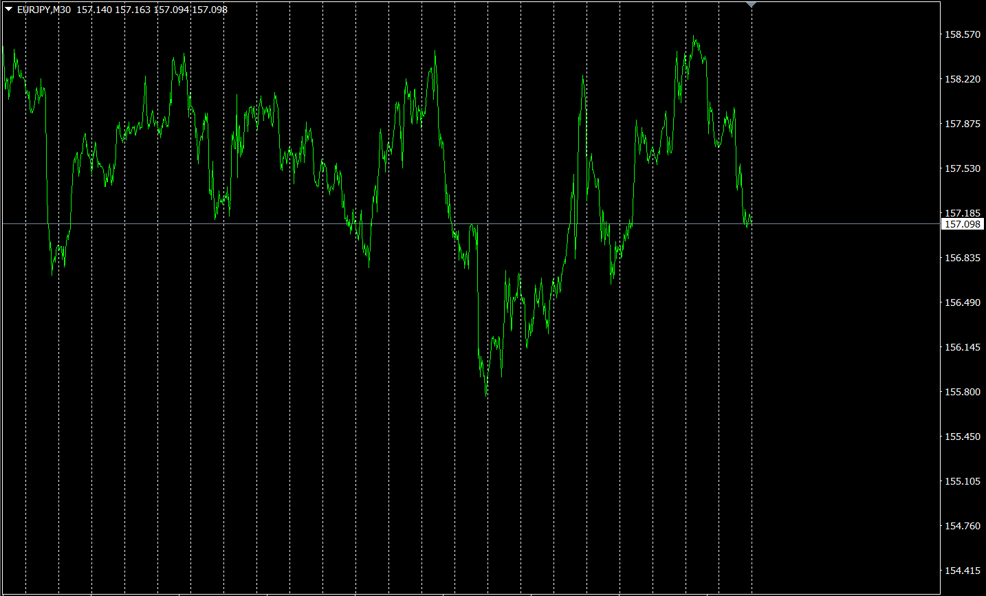 全体の流れを見るため、30分足チャートで直近約3週間分を描いています。