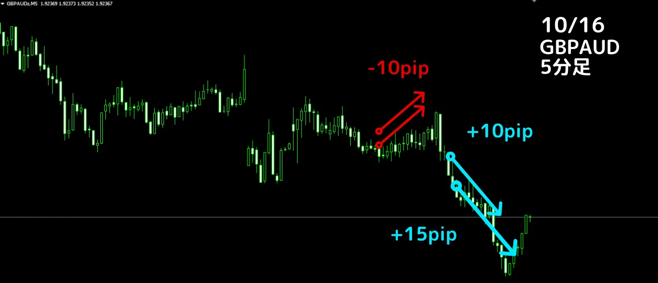 利確15pipスキャル (リスクリワード1:1.5) 1勝1敗 5pip 勝率50%