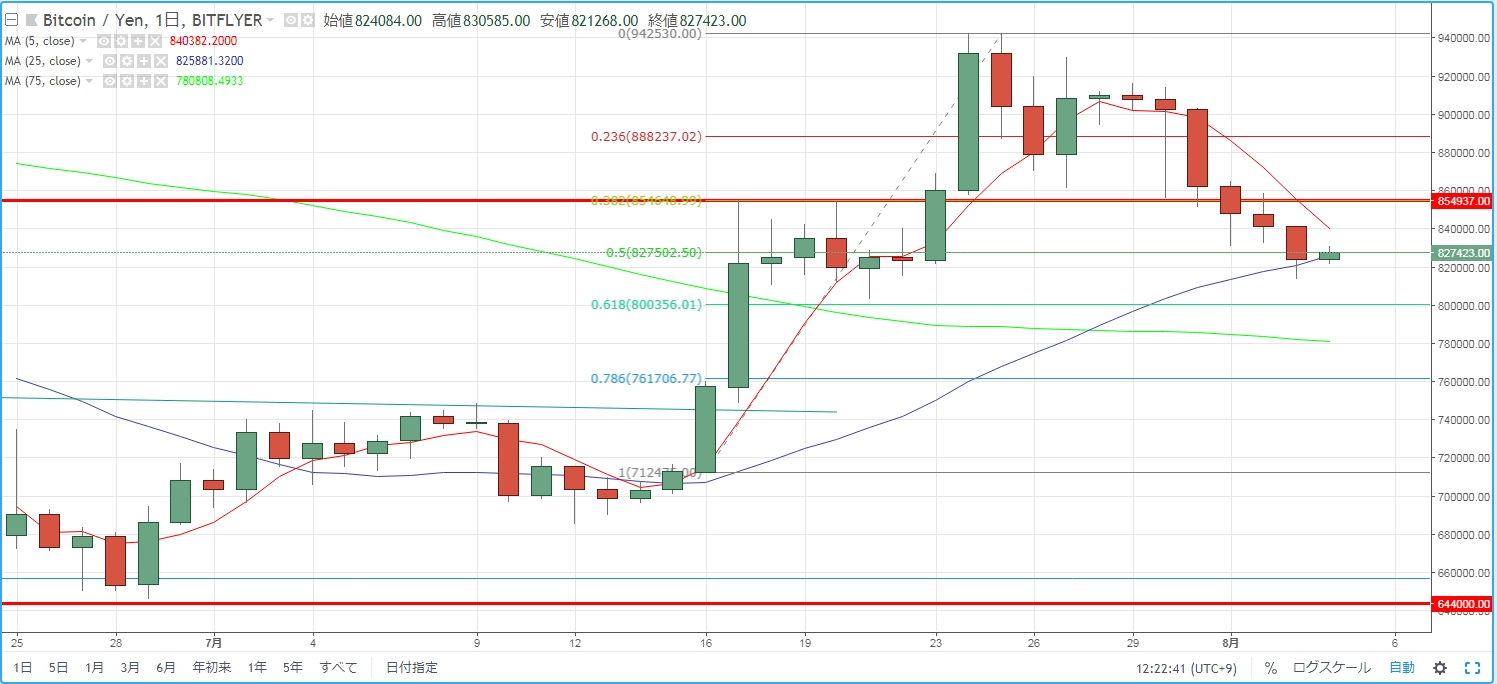 BTCJPYでデイトレする目安として、ピボットを確認します。3日は、6日連続で下げが継続しました。ただ、25SMAで一応の反発を見せた格好という相場環境でした。
