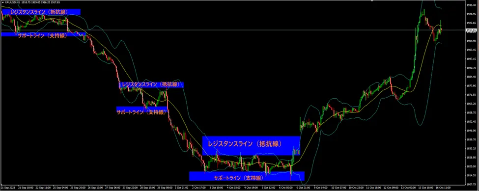 サポートライン(支持線)とレジスタンスライン(抵抗線)を見て、どこで買うか、どこで売るかを判断します。