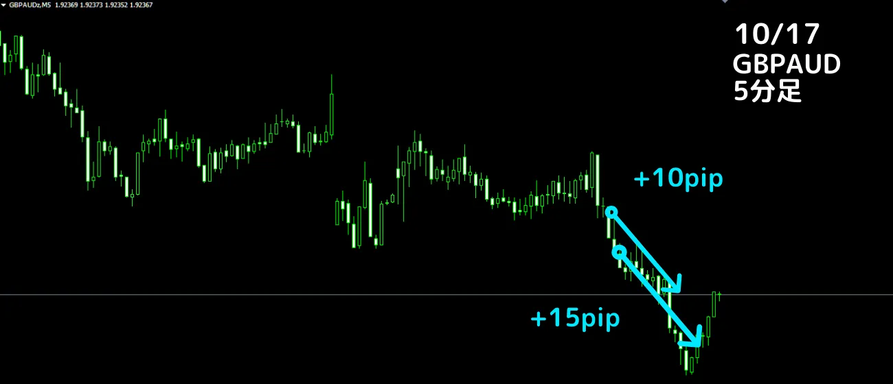 利確10pipスキャル (リスクリワード1:1.5) 1勝0敗 15pip 勝率100%