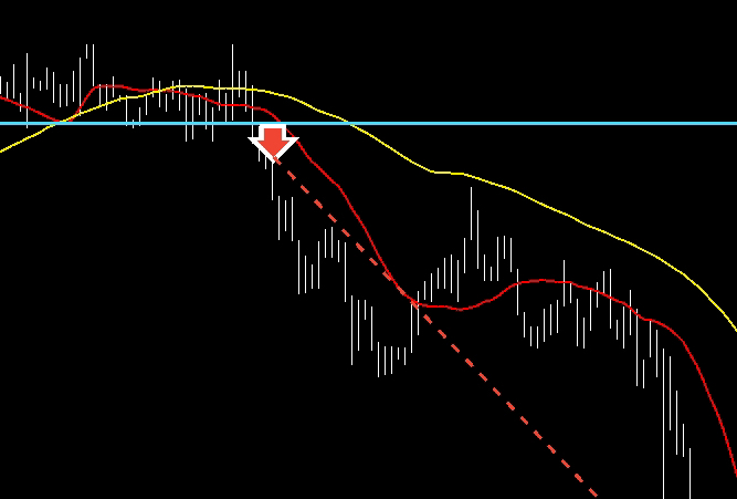 4hのma攻防。直近の戻り高値付近で上げ止まり攻防。(過去にも意識されている白ラインの水準)