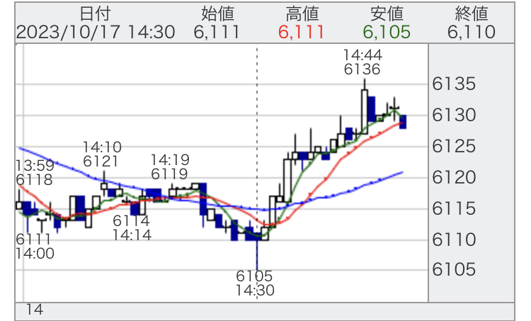 五分足などの短期足では、相場の勢いの広い時間軸での勢いがわからないからです。