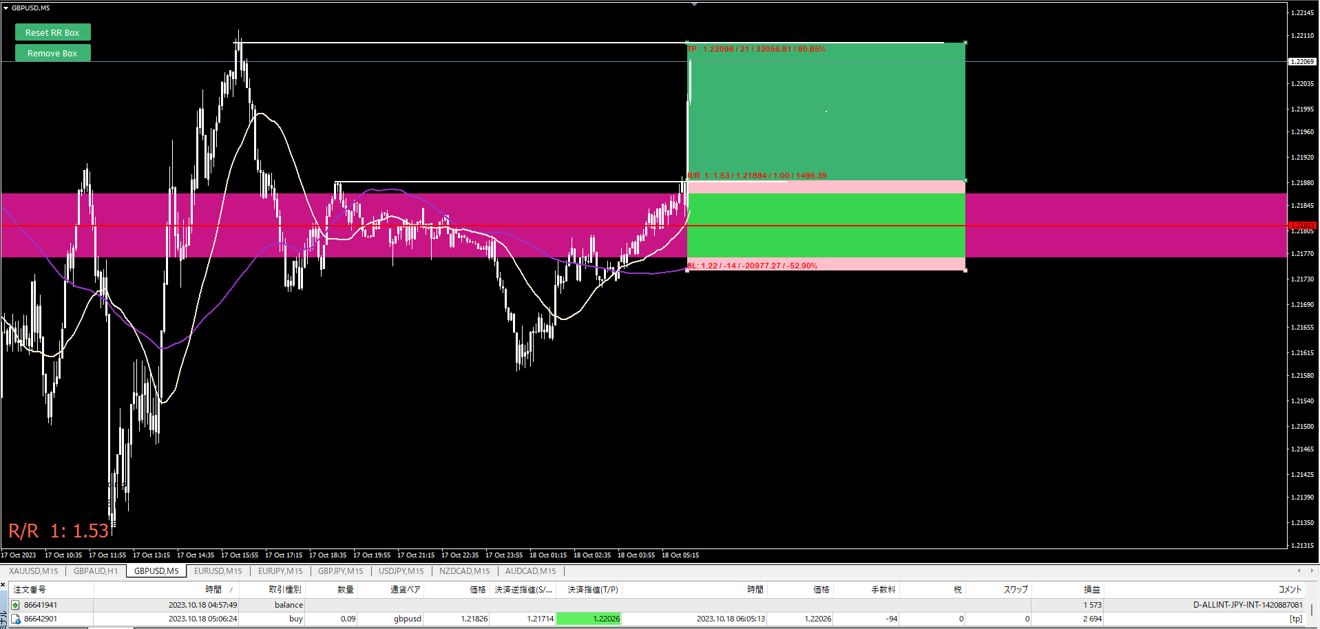 2023年10月18日の通貨ペアでAdvanced SR + Easy Trend