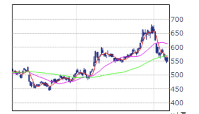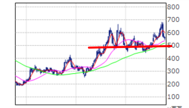 550円あたりで買ってしまうと高値掴みで養分にされそうです。
