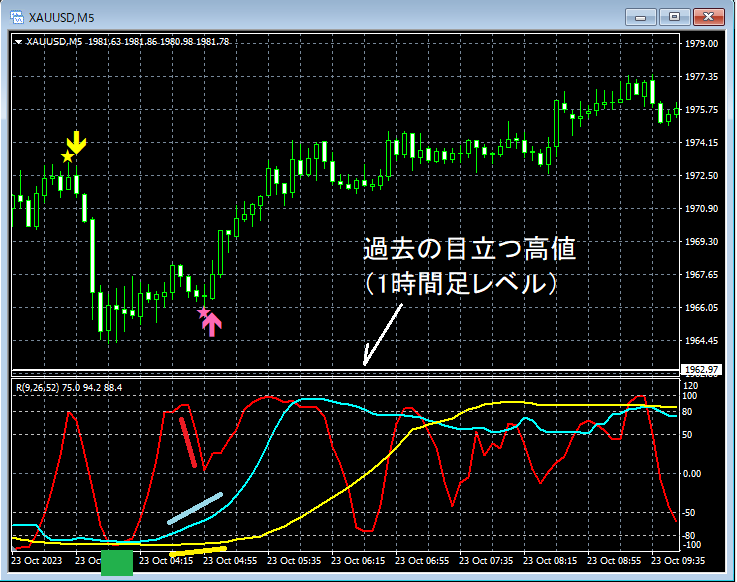 この例から、過去の目立つ高値に注目したトレード手法とmBDSRのサインとの親和性の高さがうかがえる。