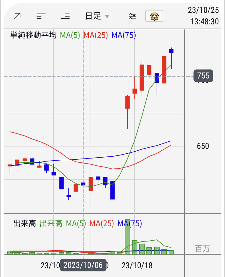 紹介してる銘柄の日足です。