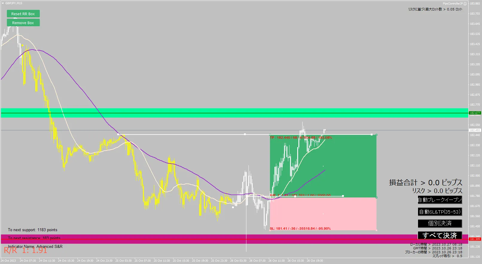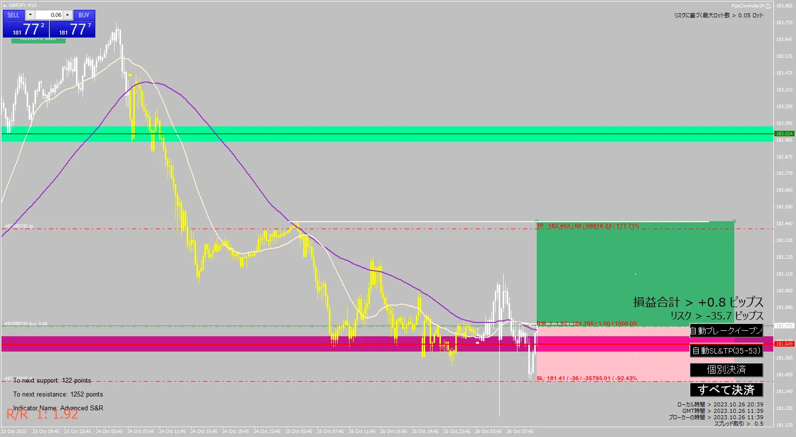 2023年10月26日の通貨ペアでAdvanced SR + Easy Trend