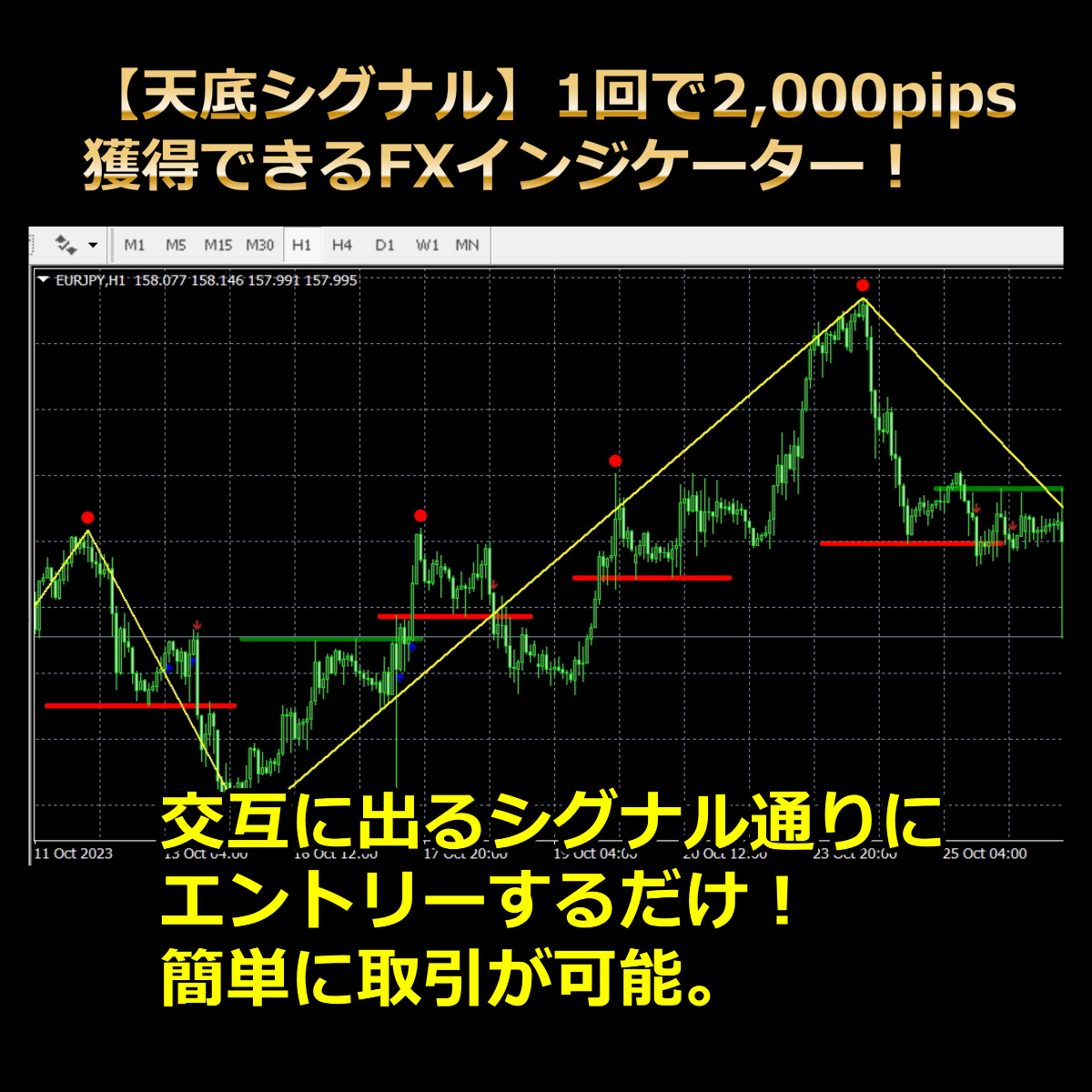 【天底シグナル】1回で2,000pips獲得できるFXインジケーター!は、交互に出るシグナル通りにエントリーするだけ!簡単に取引が可能です。