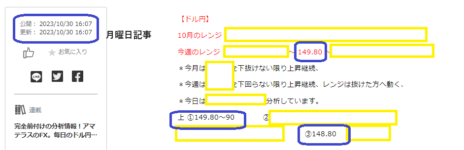 月曜日の押し目は深夜の149.795 これは、月曜日に出した週のレンジ下の値149.80 でした。
