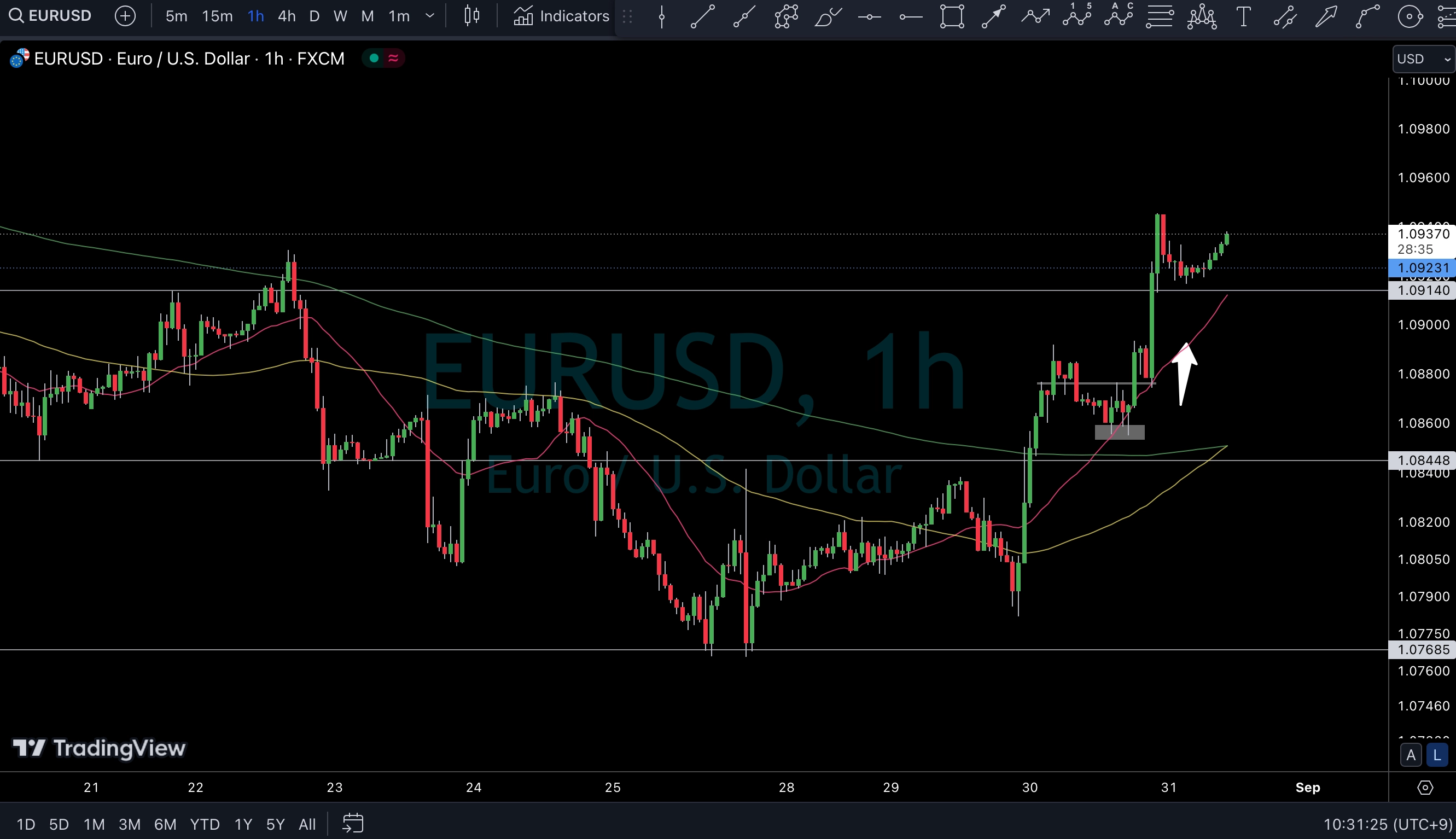 ゾーンで価格がとまり、現在