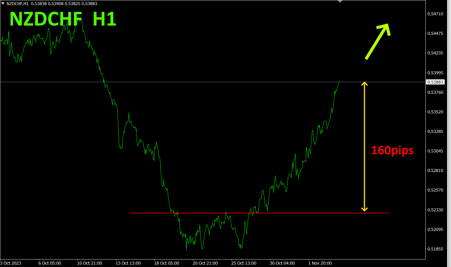先週のNZDCHF H1チャートを再掲載します。