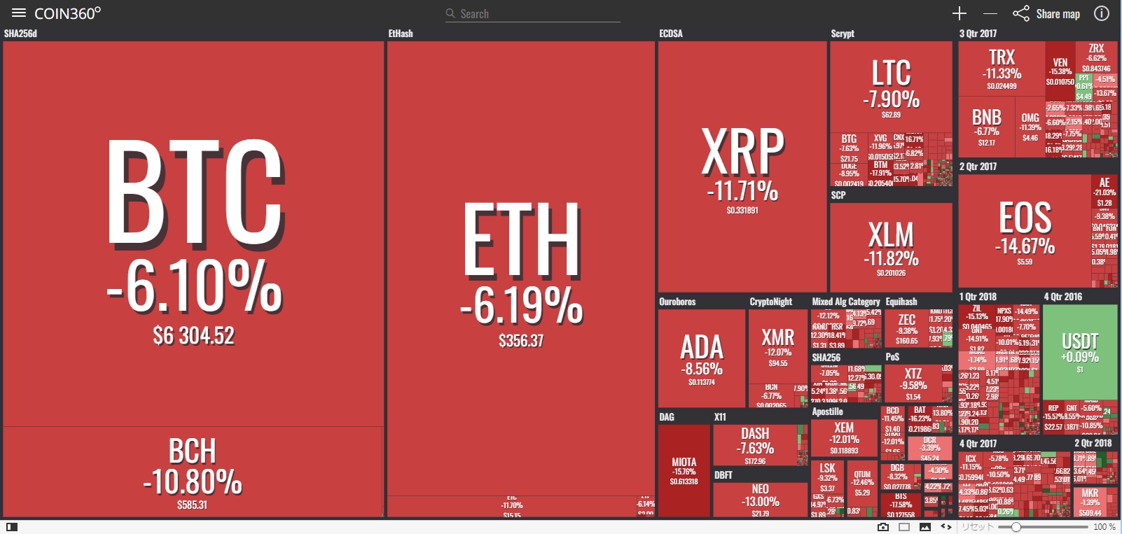 8月6日投稿の「【BTCJPY】毛抜き底形成で踏ん張れるか?」では、下落に転じた流れが75SMAでストップできるかどうかに注目したいと述べました。結果として、同水準をあっさりと割り込んでしまい、下落を加速。せっかく逆三尊形成から続伸した値幅を、全戻ししてしまった形となりました。それどころかネックライン水準も下回るていたらく。再び直近安値の約64万円どころを攻めに行ってもおかしくない相場環境となっています。