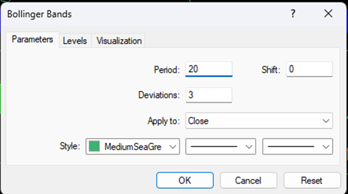 次に、Bollinger Bandを使用して価格の変動性を分析する。