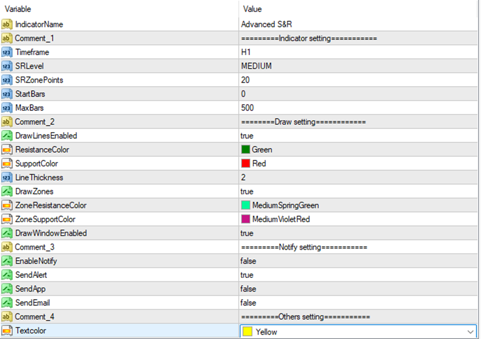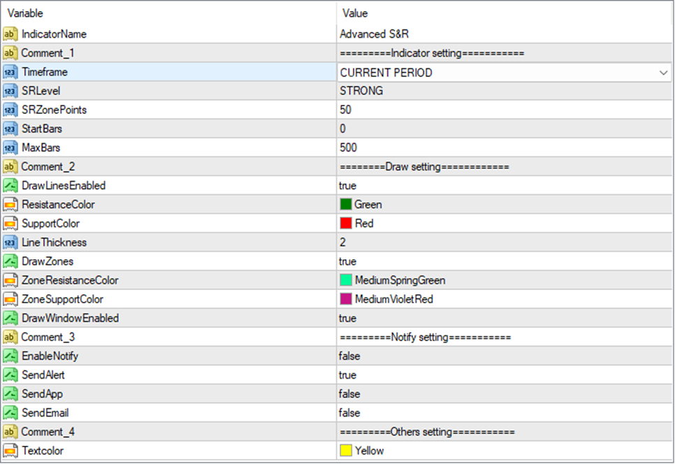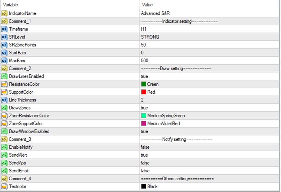 SRLever: サポートライン及びレジスタンスラインを優先順位に従って設定します:STRONG> MEDIUM > WEEK(強力> 中程度> 弱い)。