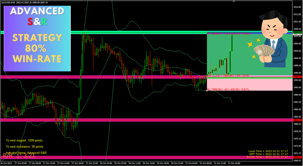 【Advanced S&RとBollinger band】簡単手法で100PIPS収益