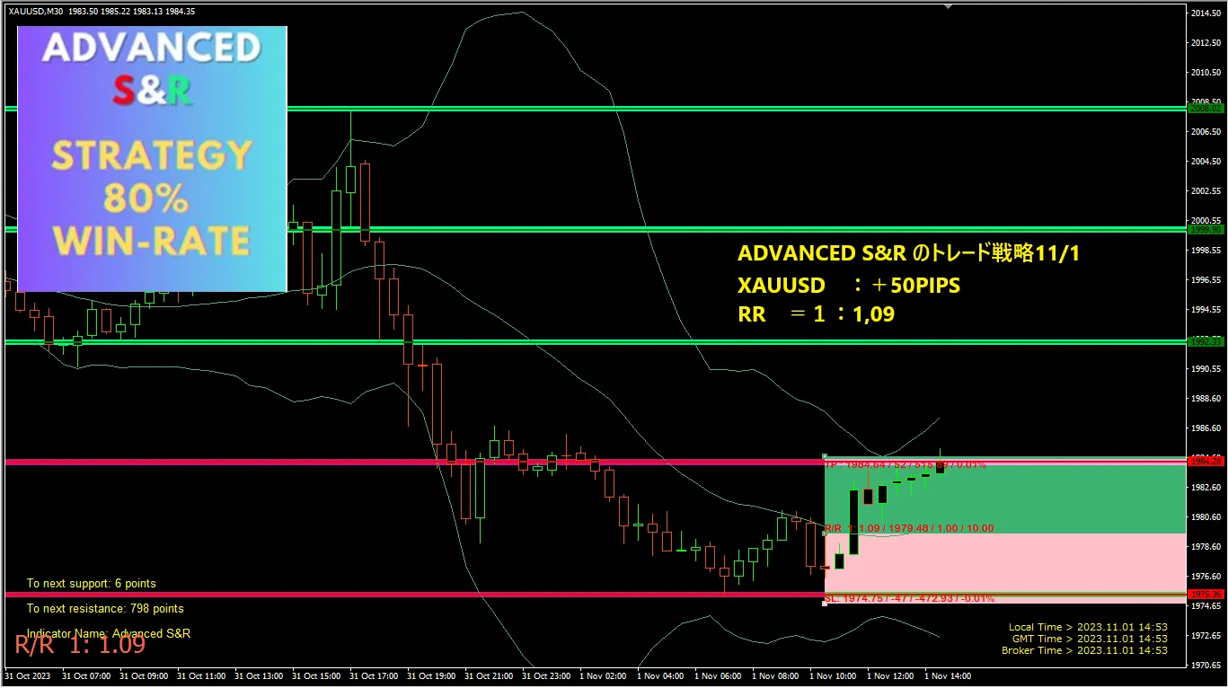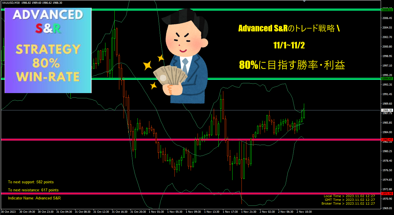 80%に目指す勝率利益・Advanced S&Rのトレード戦略 11/1~11/2