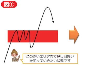 これまでにトレードにおける流れを見ていく中で、まずは長期足で目線を決定した後に短期足で現在の状況やチャートの形を確認して、サポート候補やレジスタンス候補を設定しながら目標地点を目指してトレードをしていくという解説をしました。
