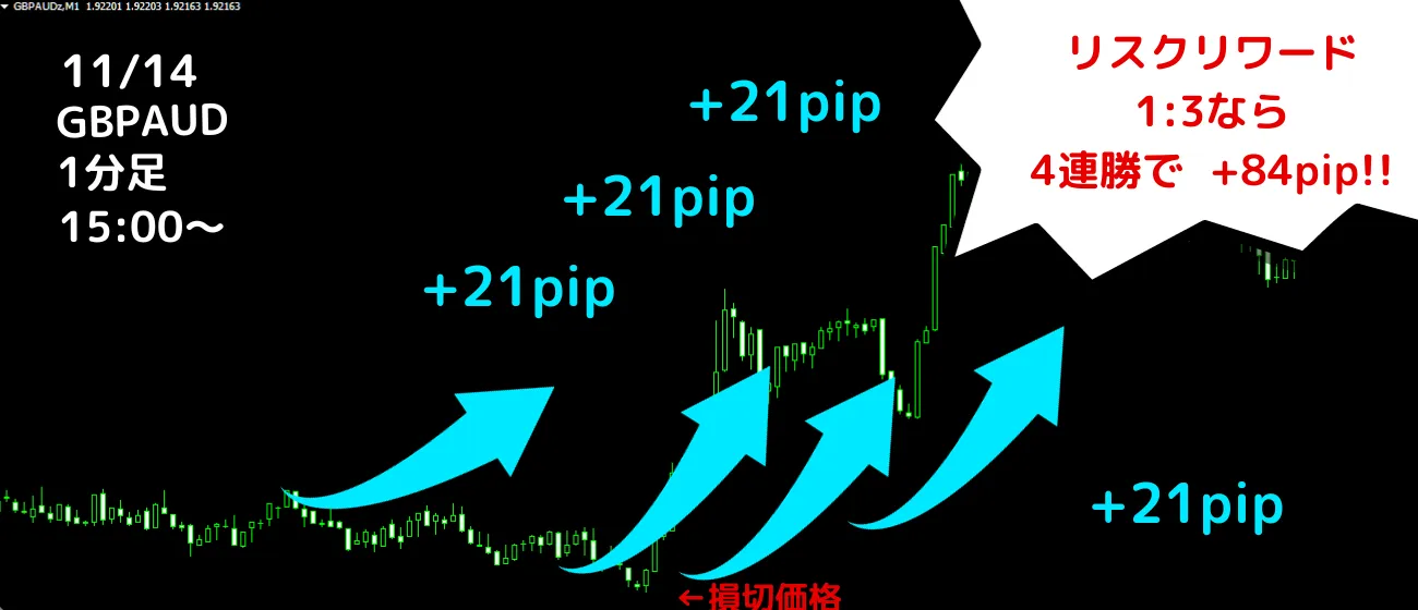 (リスクリワード1:3) 4勝0敗 +84pip 勝率100%