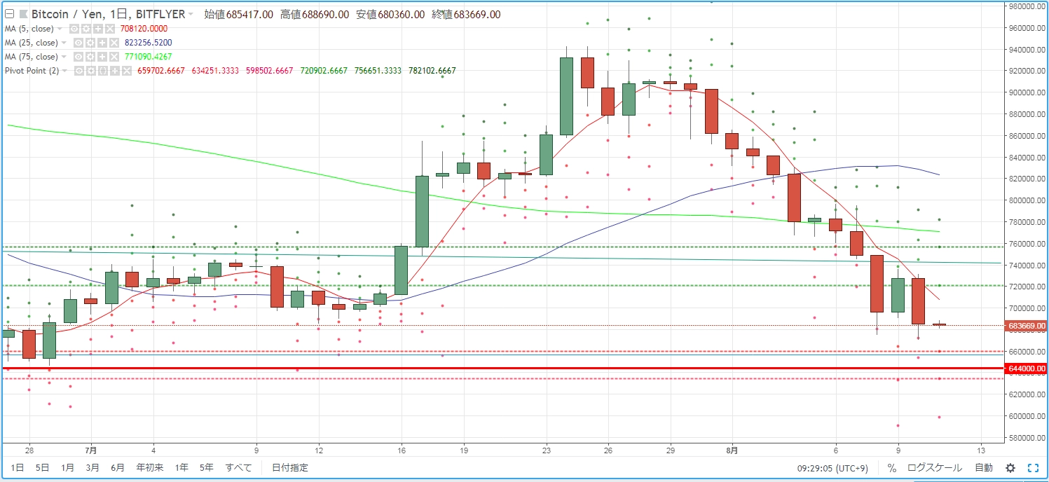 画像は2018年8月11日のキャプチャ。昨日は全体的にそれまでの猛烈な下げを受けてわずかばかりの一服を見せましたが、そこから大きく崩れて再び真紅の画面となりました。多くの銘柄で下値を更新している相場環境です。(購入者への公開はこの部分を書き換えてください)