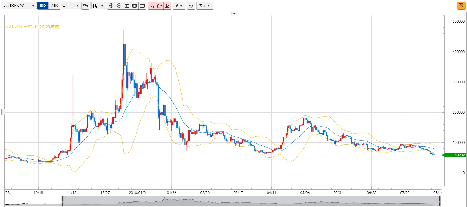 ネムが、2017年12月につけた安値11.67円を割り込みました。本日はまだ終値が確定していないため、アヤに過ぎない可能性もあります。しかし同水準を下回ると、もうサポート候補はありません。FXにおけるトルコリラのチャートがそうですが、サポートがないと下落を止められないというのが参加者心理と考えられます。