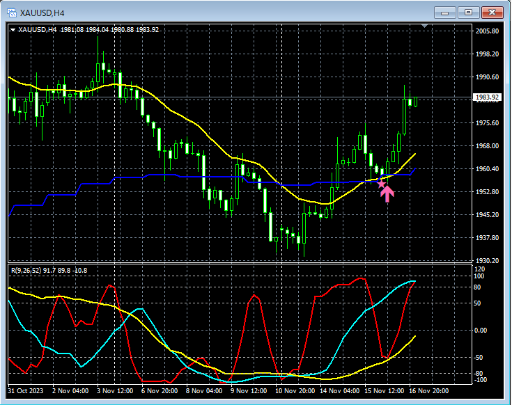 ゴールド(XAUUSD):日足EMA21と4時間足EMA21とmBDSRの押し目買いサイン