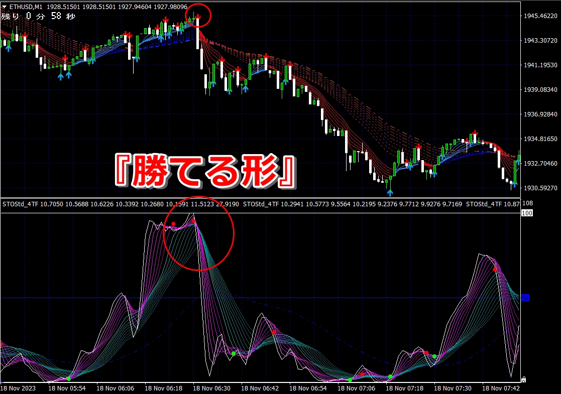 ★ サイン点灯後、ピンク帯が緑帯をすくい上げる形状で必勝エントリー!