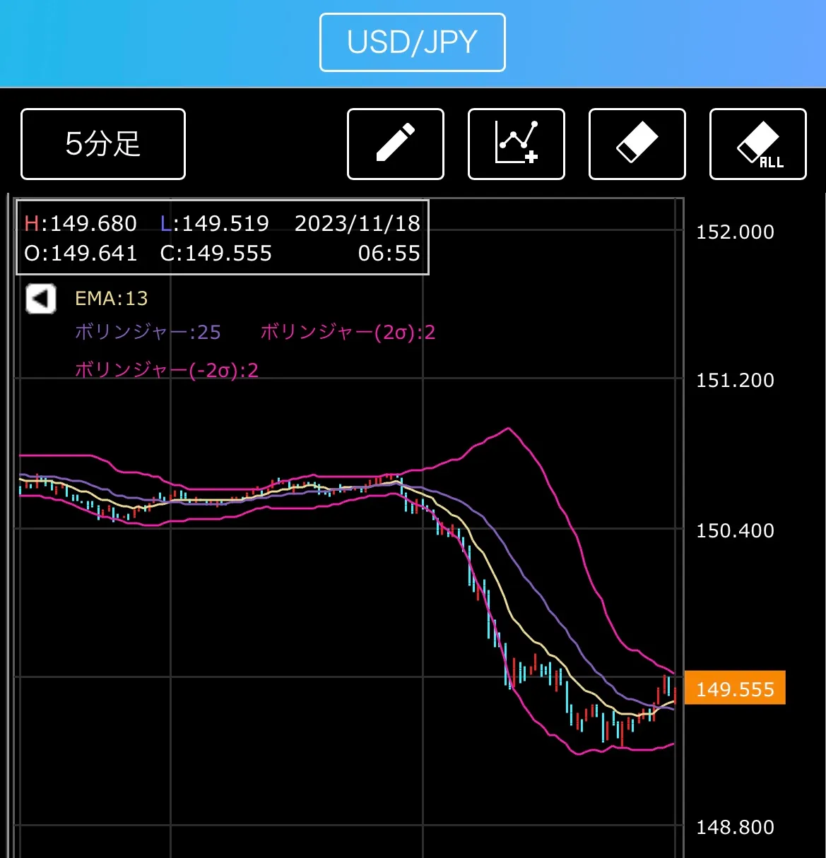 ドル円5分足チャート