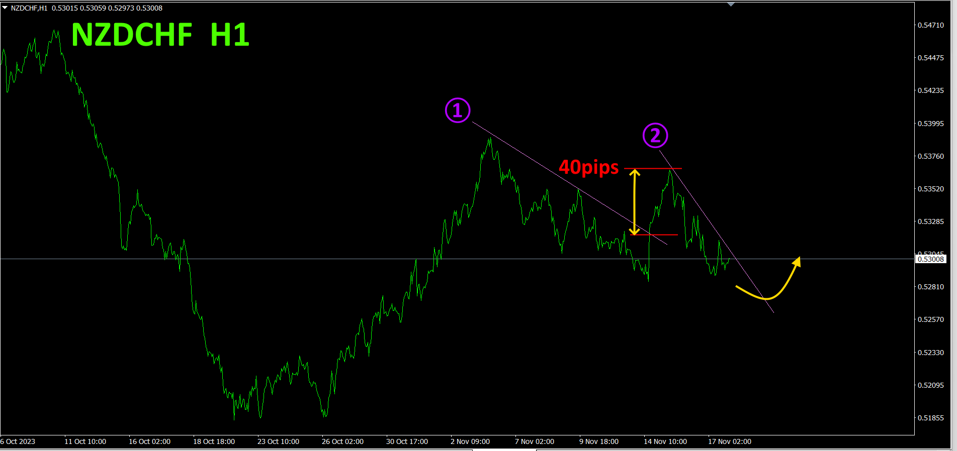 前回、2505「天底Searchインジケータ」を使って、次の新しいターゲットとしてNZDCHFを選択しました。大底からの上昇を狙っています。