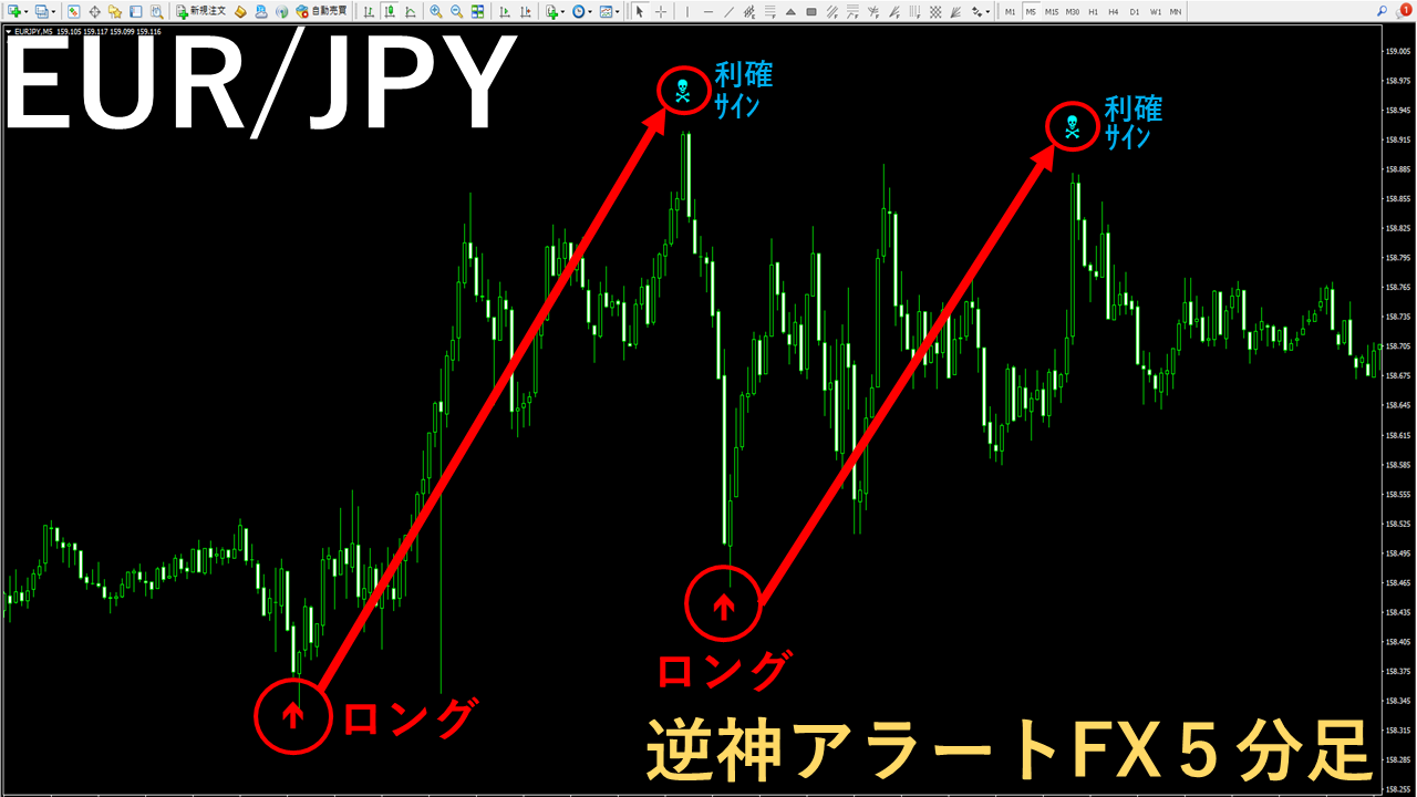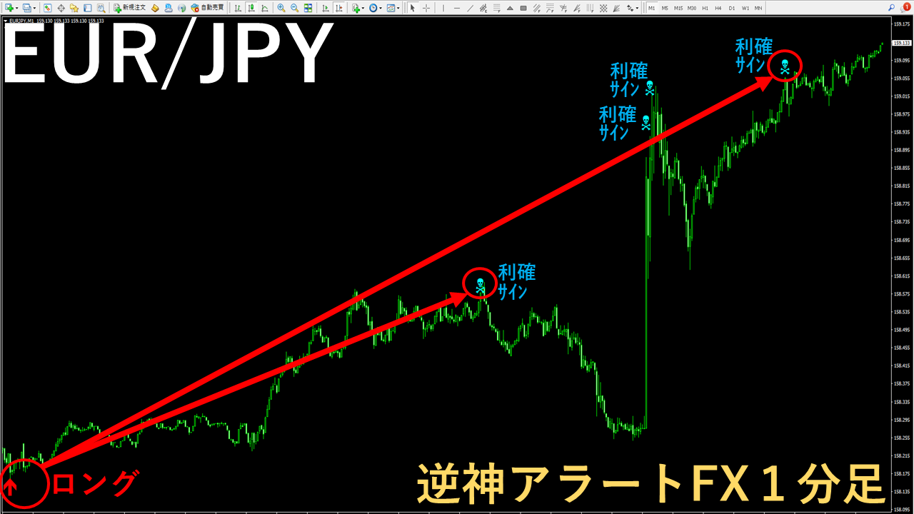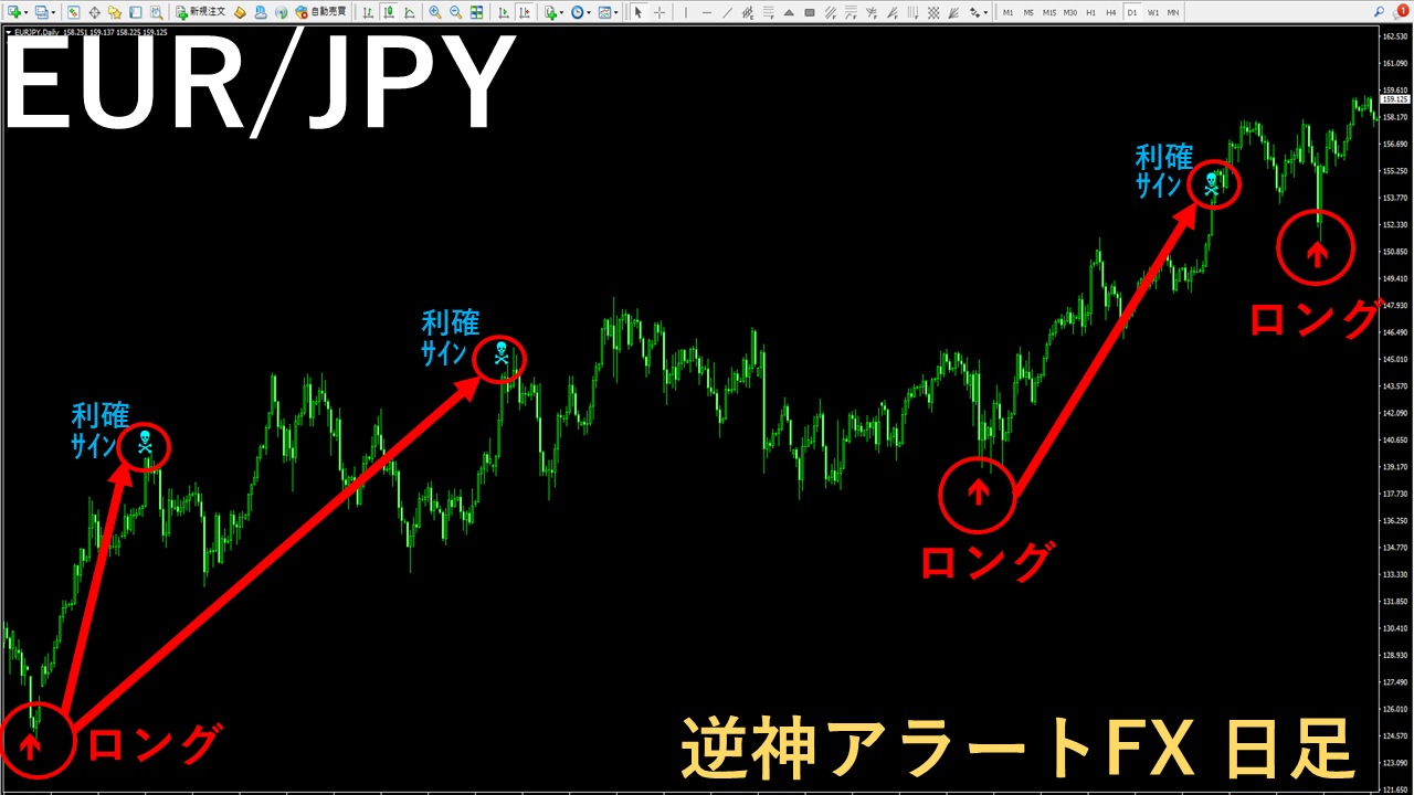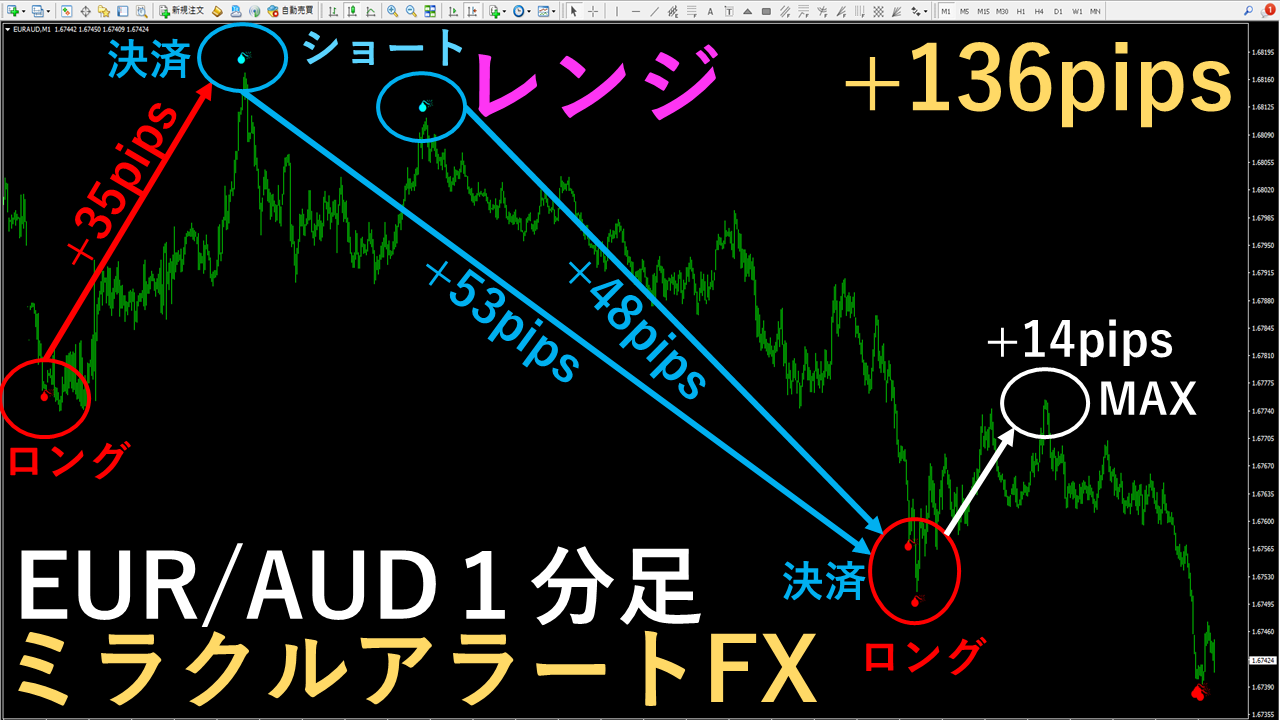 ↓↓↓こちらの参考画像は1時間足専用のミラクルアラートFX↓↓↓