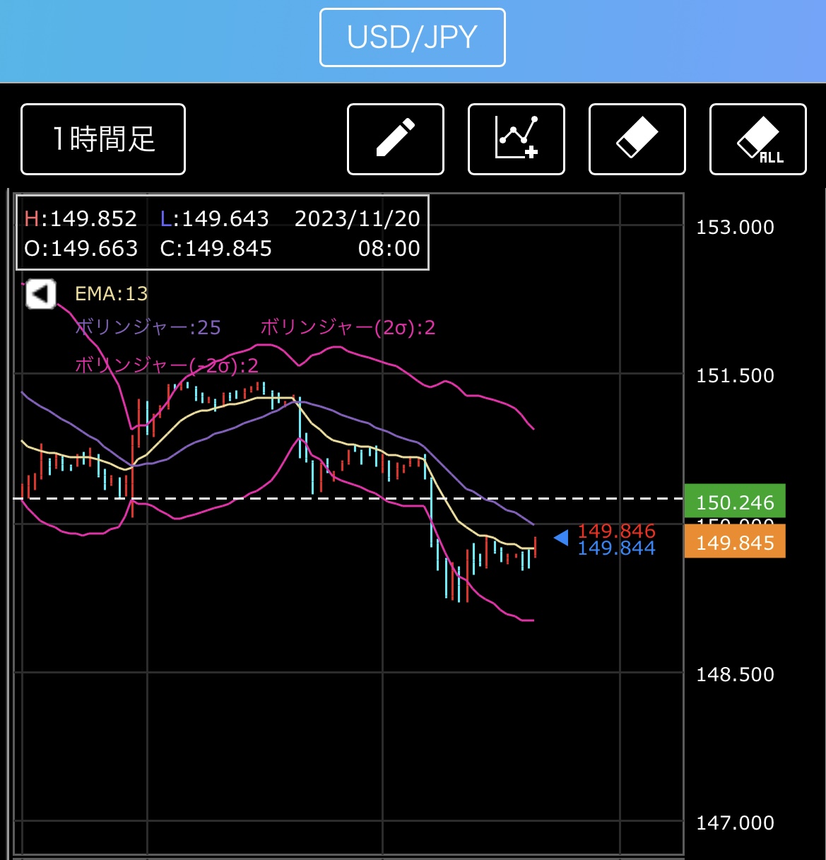 GMOクリック証券の外為オプションチャートでは、14964までは下がらない設定です。